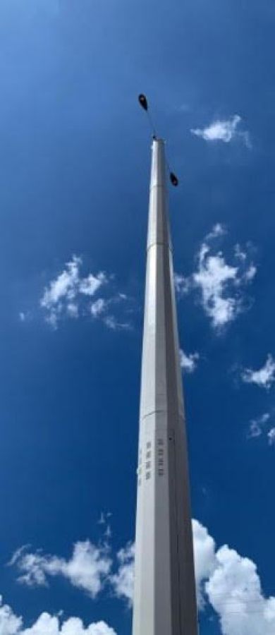 A estrutura foi dimensionado com o auxílio de software, na sua fabricação foi utilizado chapa de aço USI Civil 300, dobradas e soldadas dividido em módulos, as junções destes módulos dão origem a silhueta dodecagonal,